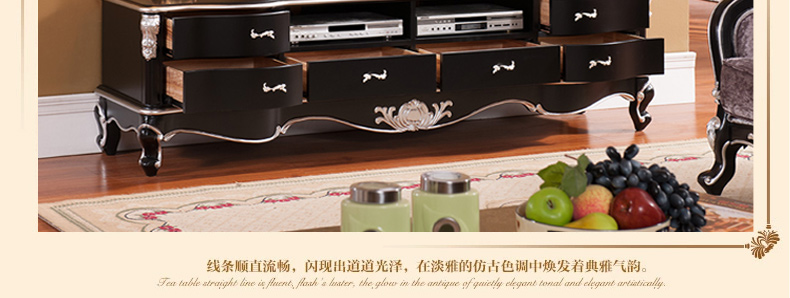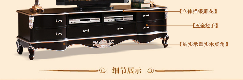 风飞扬 欧式电视柜新古典描银地柜简约雕花法式田园电视柜009