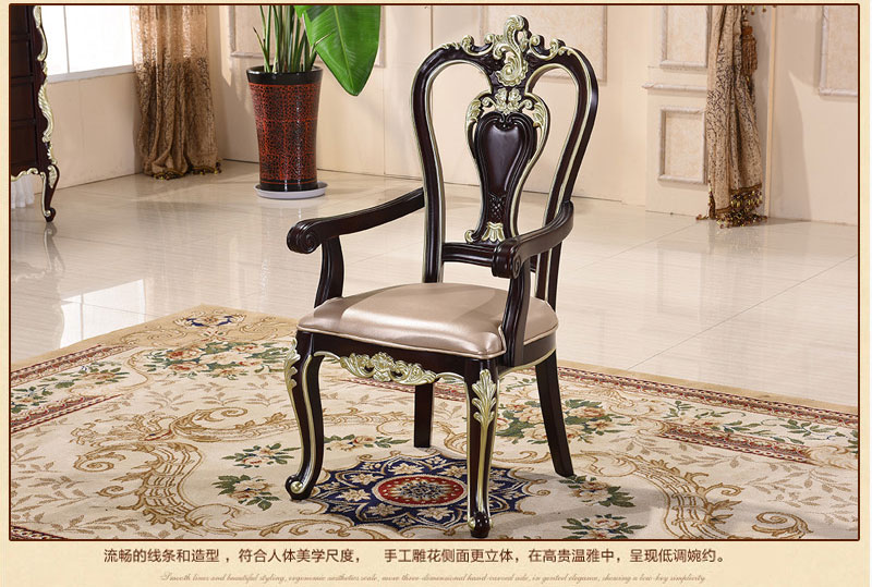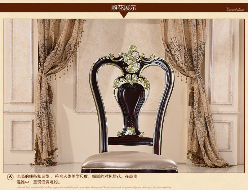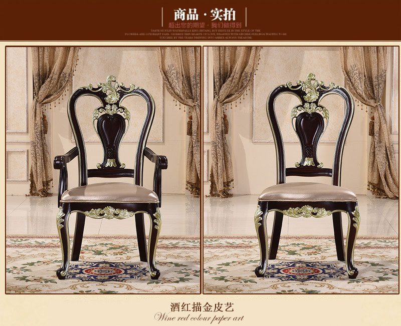 风飞扬 欧式实木椅子高档酒店餐椅法式田园皮艺书桌椅子OPD002