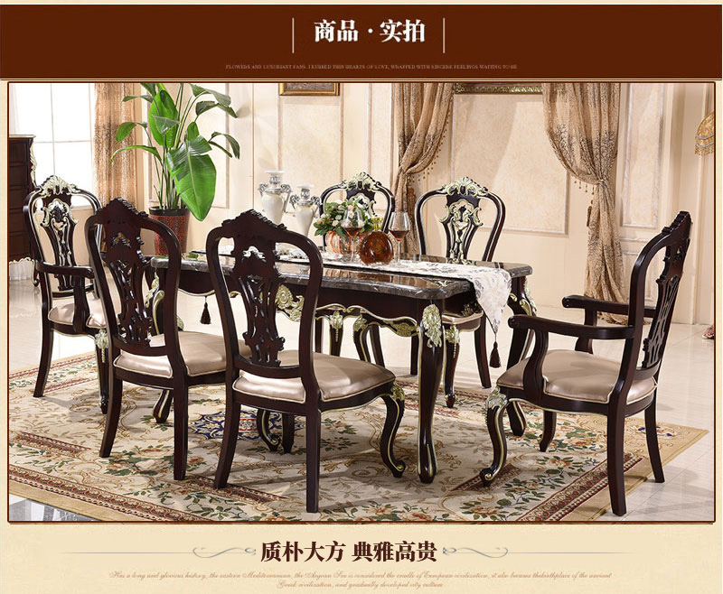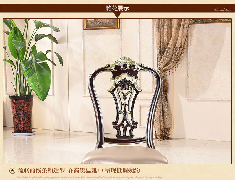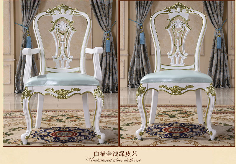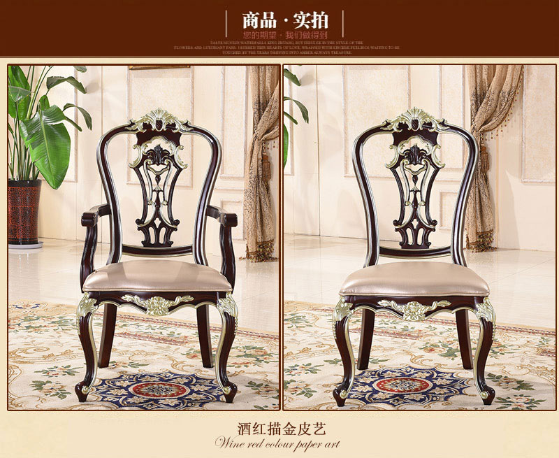 风飞扬 欧式实木餐椅书桌椅 酒红描金背靠扶手休闲椅子OPD001