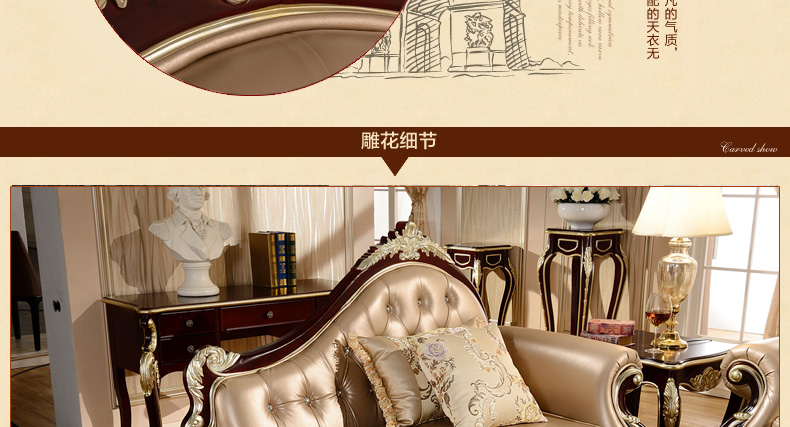 | 【主要材料】 | 实木框架 +雕花+布艺(皮艺)! | ||