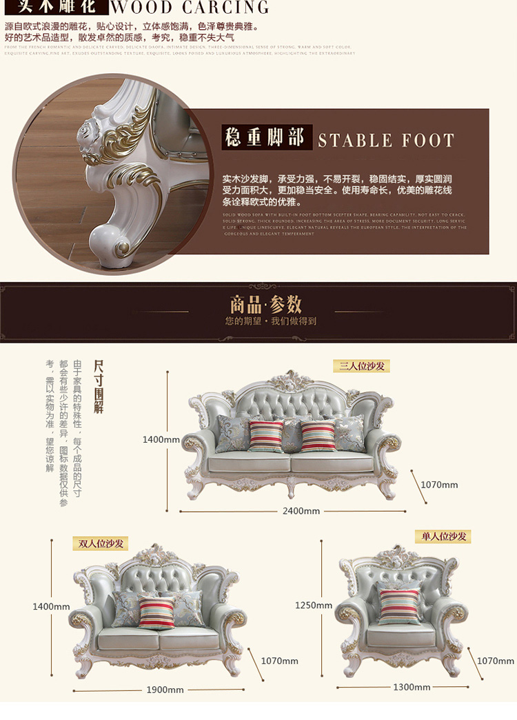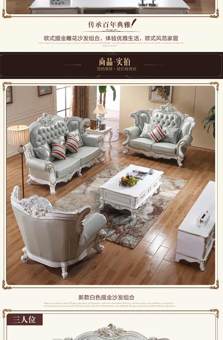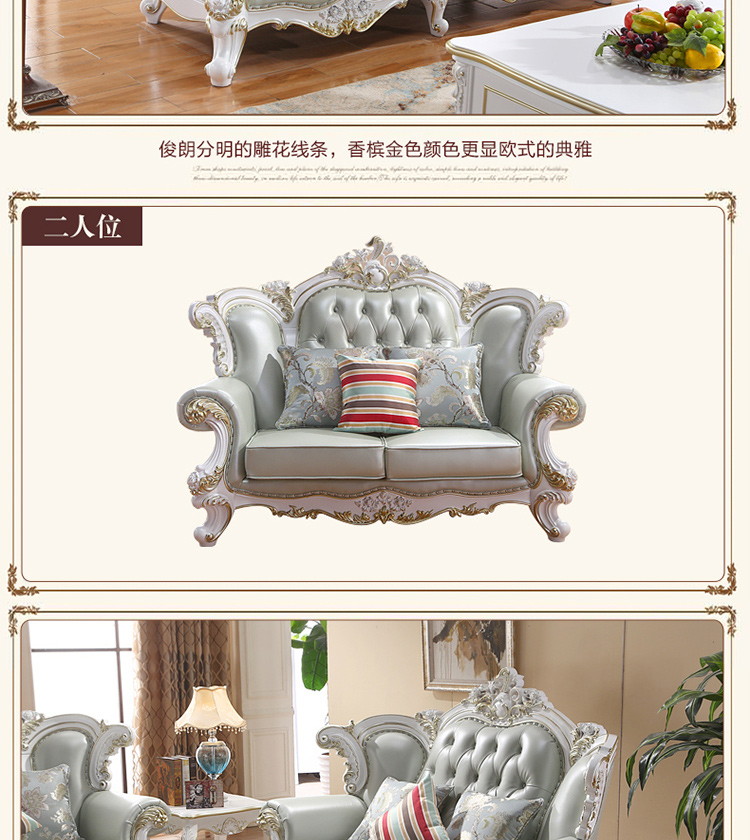 欧式真皮沙发客厅奢华实木单双三人皮艺沙发组合美式别墅整装家具