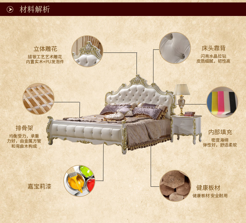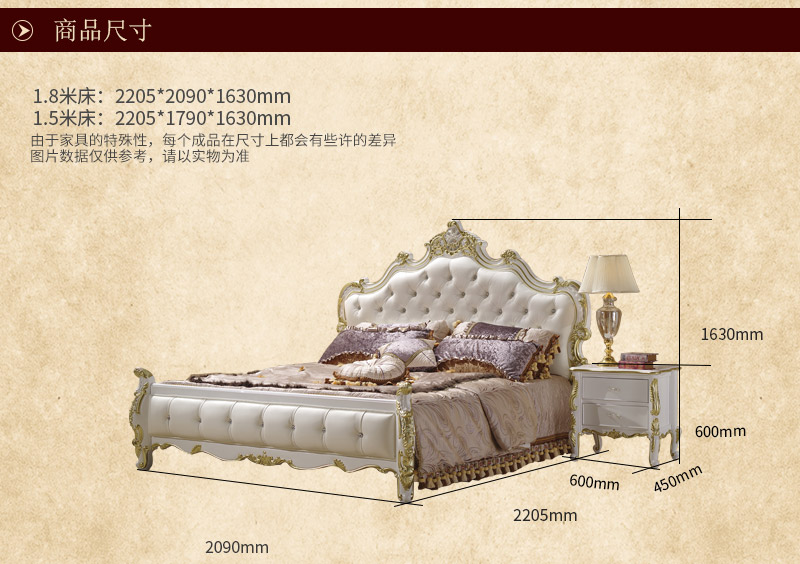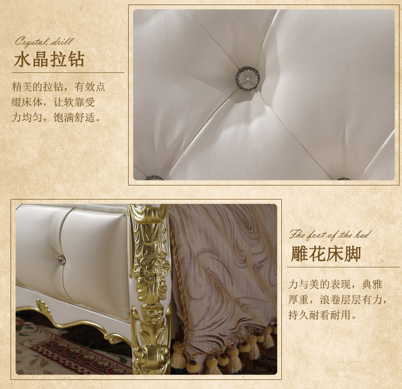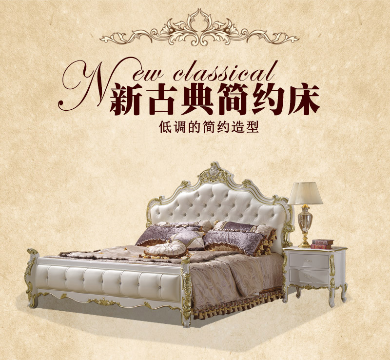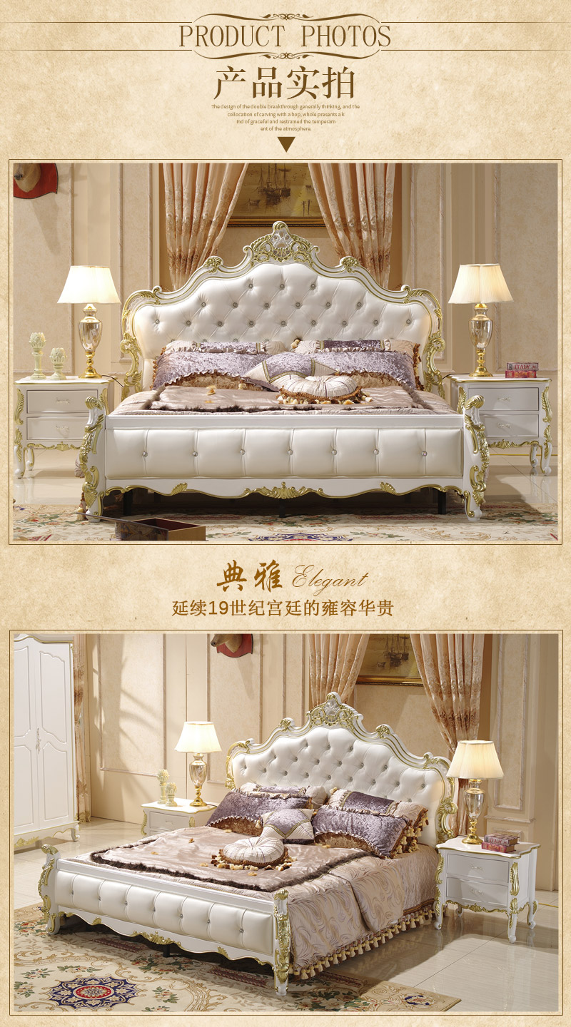 风飞扬家具 欧式双人床实木床1.8米法式田园床现代简约卧室床014