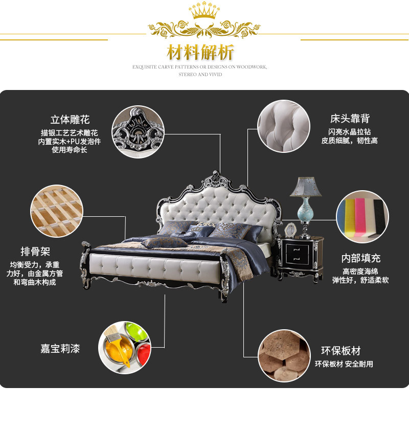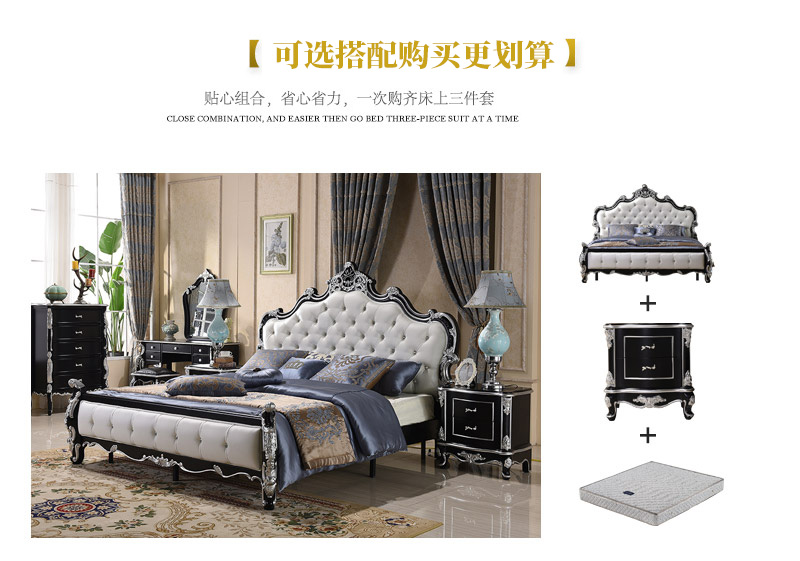 风飞扬家具 欧式双人床实木床1.8米法式田园床现代简约公主床主卧