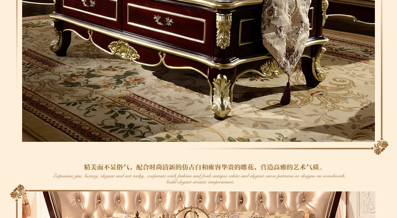 风飞扬家具欧式长茶几大理石茶几小户型客厅沙发长几法式雕花茶桌