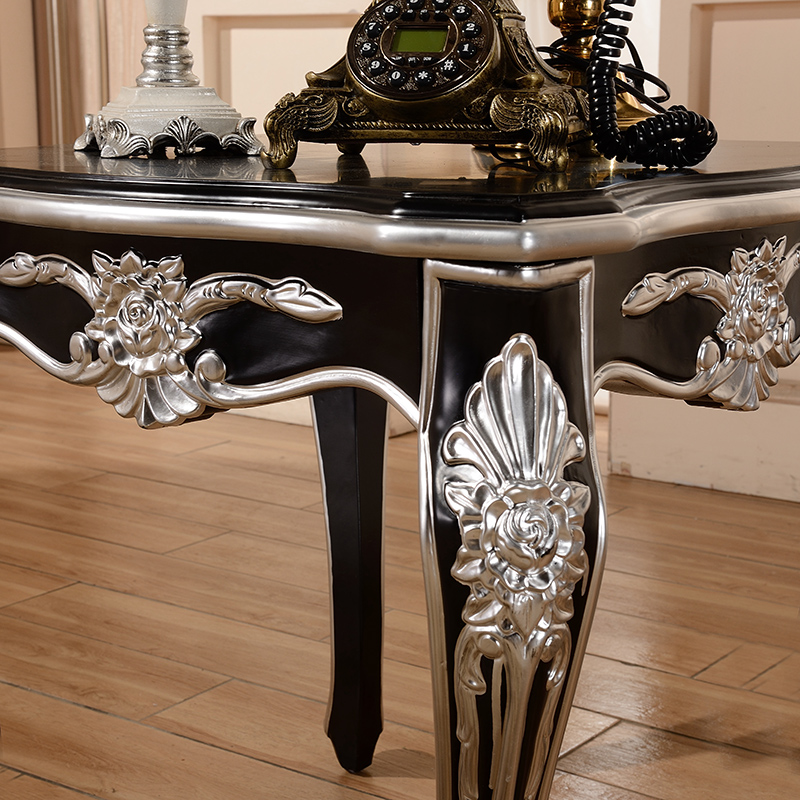 风飞扬欧式客厅方边几雕花描银电话桌法式黑色小茶几角几007