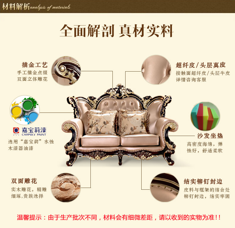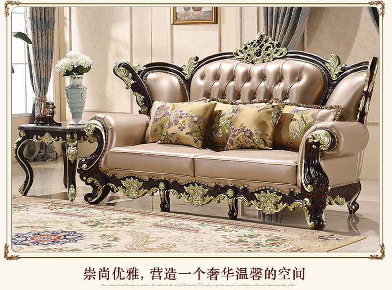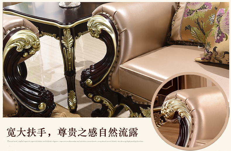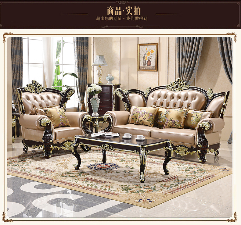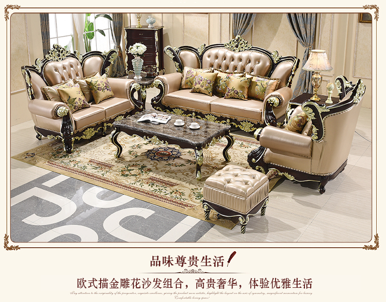 欧式真皮沙发 实木雕花头层牛皮大户型客厅奢华皮艺沙发123组合