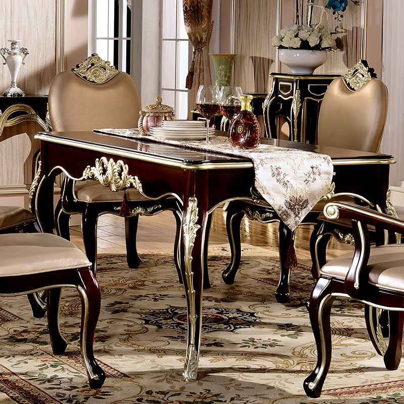 风飞扬欧式餐桌长方形法式田园餐桌椅组合家用餐厅实木吃饭桌子09